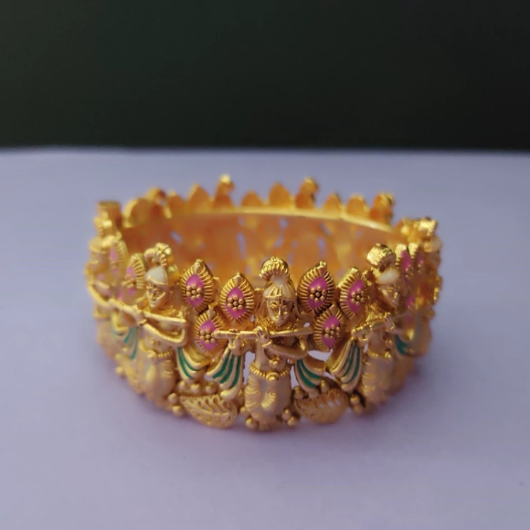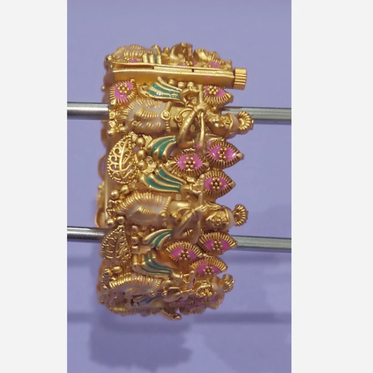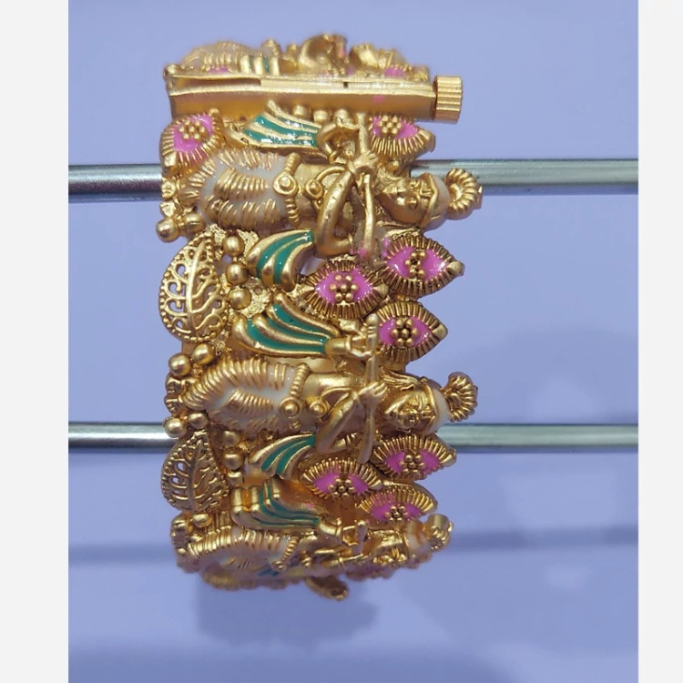 دستبند هندی با روکش آب طلا کاری شده و میناکاری شده . این دستبند روی دست جلوه بسیار زیبایی دارد و خاص پسند هست .