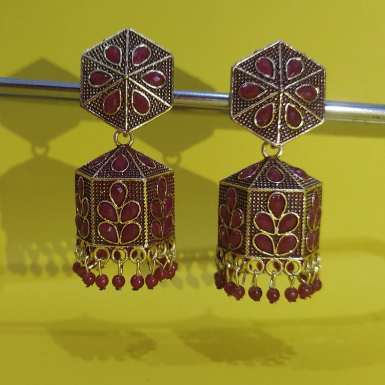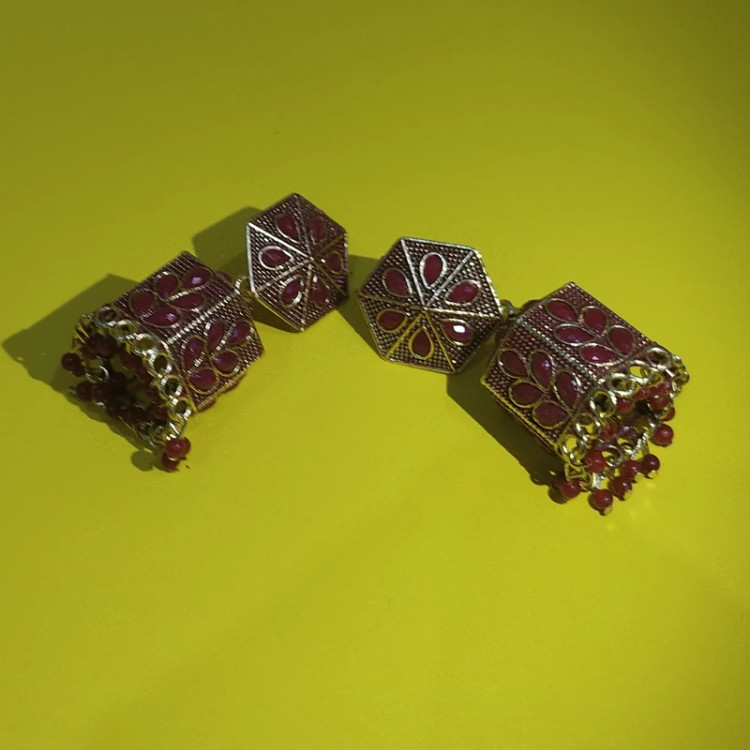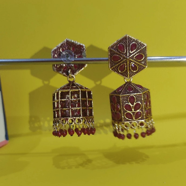 گوشواره هندی طرح روبی 204 زیبا و خاص مختص بانوان خاص پسند رنگ ثابت