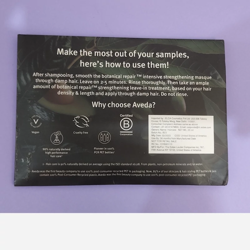 کرم ترمیم کننده موی گیاهی AVEDA آسیب مو را در 2 دقیقه برطرف میکندو شما با یک بار استفاده موهایی به وضوح سالمتر نسبت به قبل خواهید داشت موها را عمیقاً نرن کرده و فورا گره ها ی مو را باز میکند. بعد از شامپو استفاده شود این کرم روی موهای 123 خانم تست شده و 92 درصد اعلام کردند که پس از استفاده سالم تر به نظر رسید طریقه مصرف: بعد از شامپو کردن موهایتان ،ماسک تقویت کننده گیاهی (masque reparateur intense )را روی موهای مرطوب بمالید ، 2 تا 5 دقیقه صبر کنید.سپس کاملا آبکشی کنید سپس به مقدار کافی از کرم تقویت کننده ی گیاهی را بر اساس تراکم و بلندی موی خود بردارید و روی موهای مرطوب بمالید .و دو شب بعد آبکشی کنید .