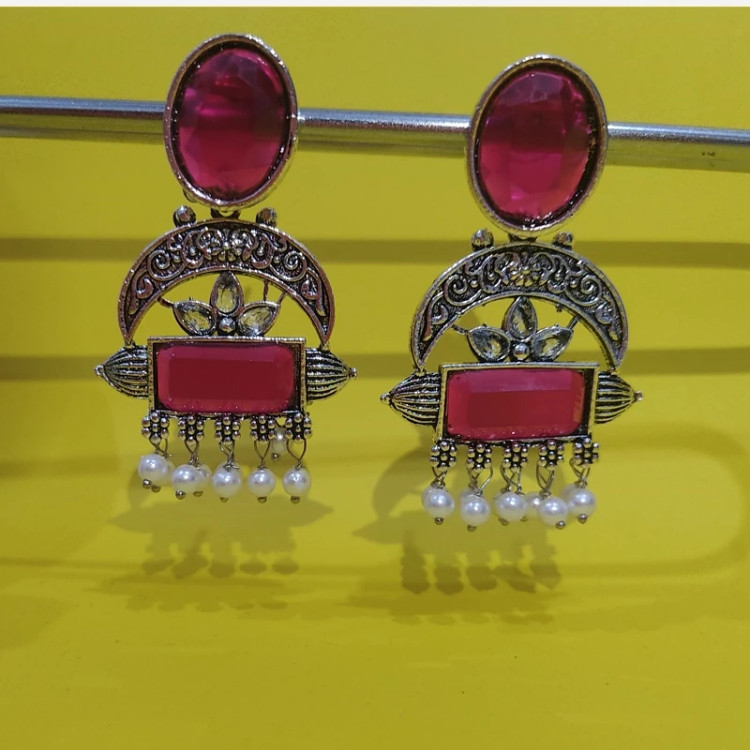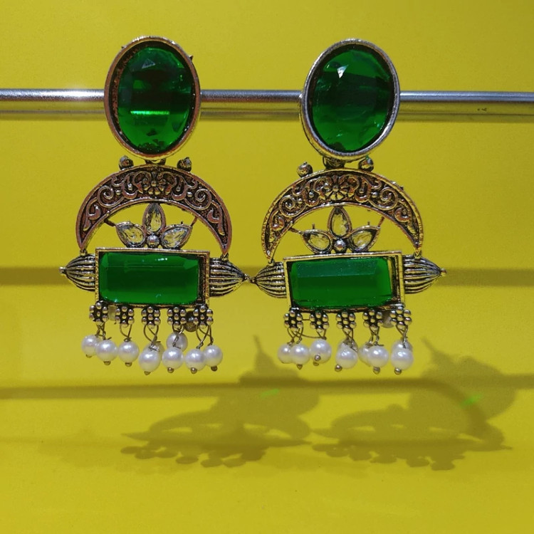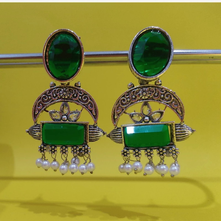 گوشواره هندی زیبا و خاص در دو رنگ سبزو قرمز رنگ ثابت خاص پسند
