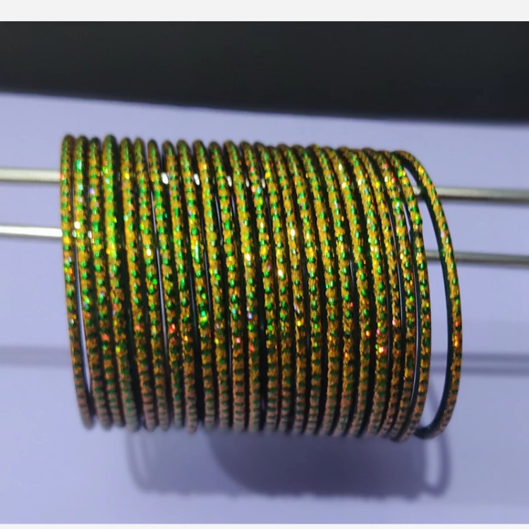 النگو شیشه ای هندی رنگ سبز طلایی سایز 2 (24 عدد 280 هزار)